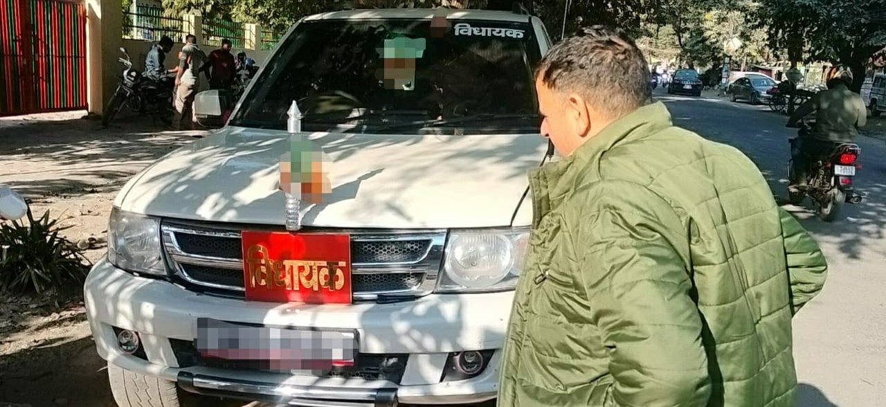 विधायक का बोर्ड,हूटर तथा काली फिल्म लगे वाहन को दून पुलिस ने किया सीज