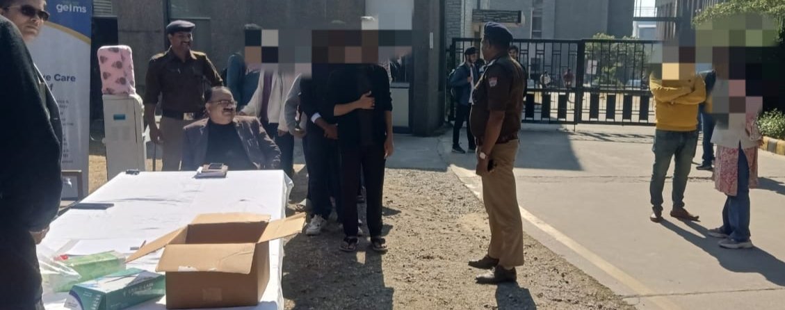 पुलिस-प्रशासन व डाक्टरों की संयुक्त टीम ने रेन्डमली 10 छात्रों का लिया ब्लड सेम्पल और 45 छात्रो की करी मेडिकल जांच