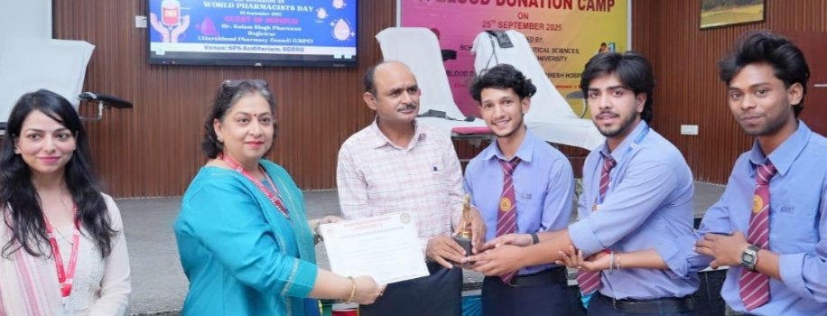 एसजीआरआरयू में विश्व फार्मासिस्ट दिवस पर रक्तदान का आयोजन