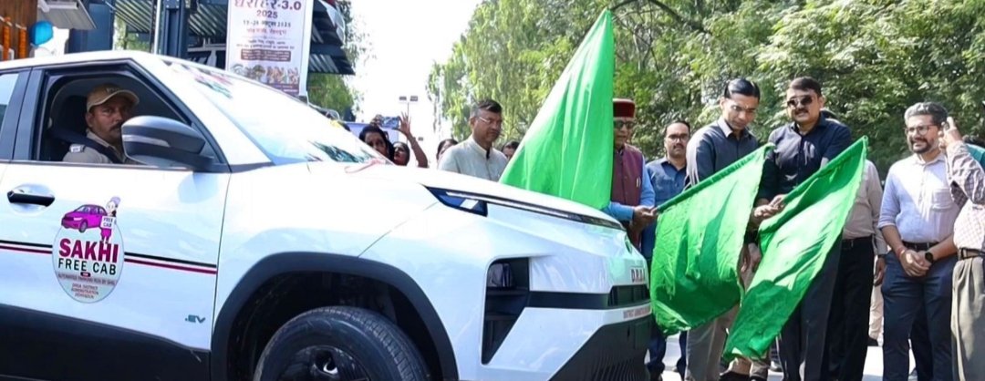 प्रोजेक्ट ऑटोमेटेड पार्किंग अन्तर्गत2 नए ईवी वाहन ‘‘फ्री सखी कैब सुविधा’’को हरी झण्डी दिखाकर रवाना किया