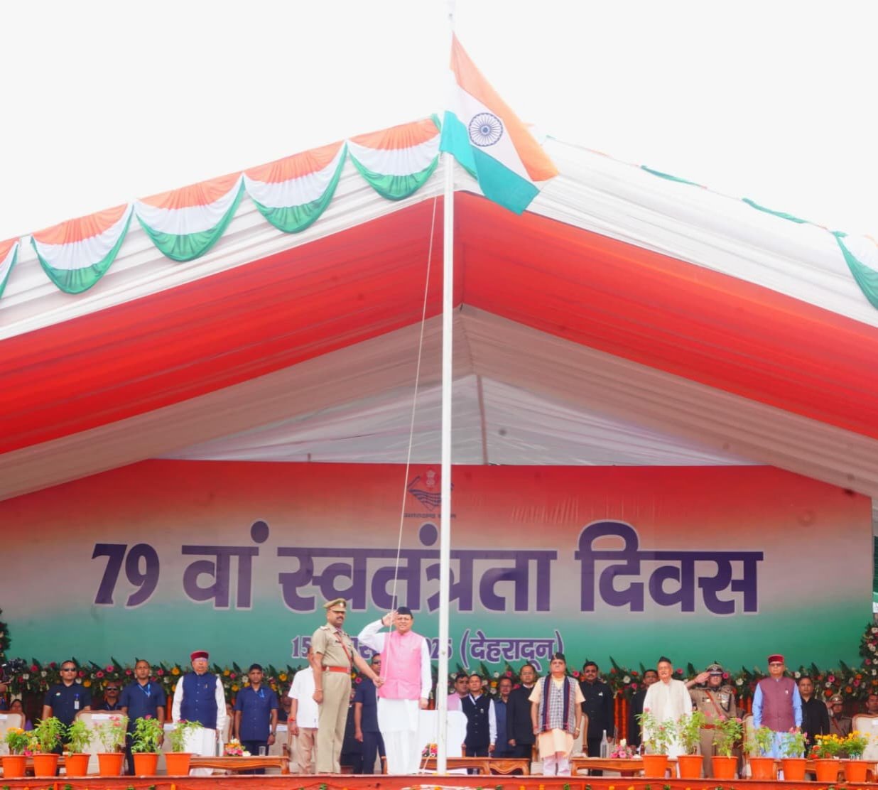 मुख्यमंत्री पुष्कर सिंह धामी ने 79वें स्वतंत्रता दिवस के अवसर पर परेड ग्राउंड देहरादून में राज्य के मुख्य कार्यक्रम में ध्वजारोहण किया।