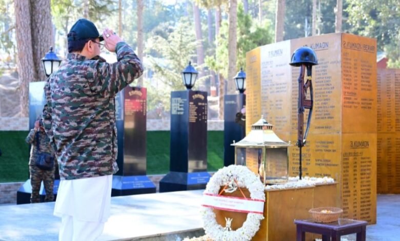 मुख्यमंत्री ने कुमाऊं रेजीमेंट केंद्र रानीखेत पहुंचकर अमर बलिदानियों को अर्पित की श्रद्धांजलि