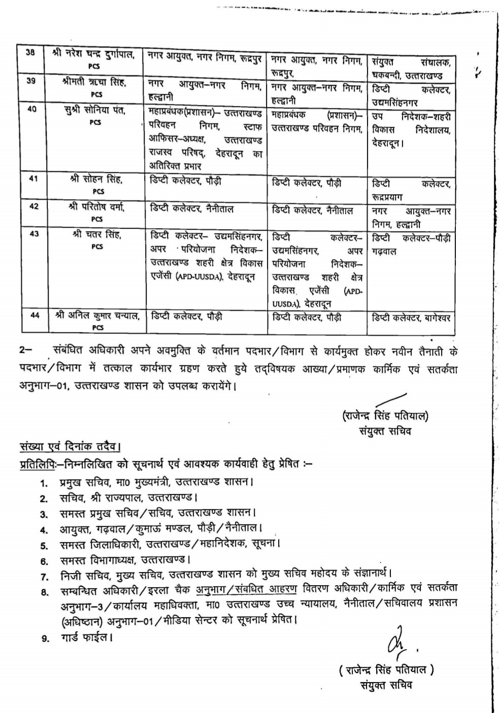 उत्तराखंड में जिलाधिकारियों सहित बड़ी संख्या में IAS, IFS, और PCS अधिकारियों के तबादले: