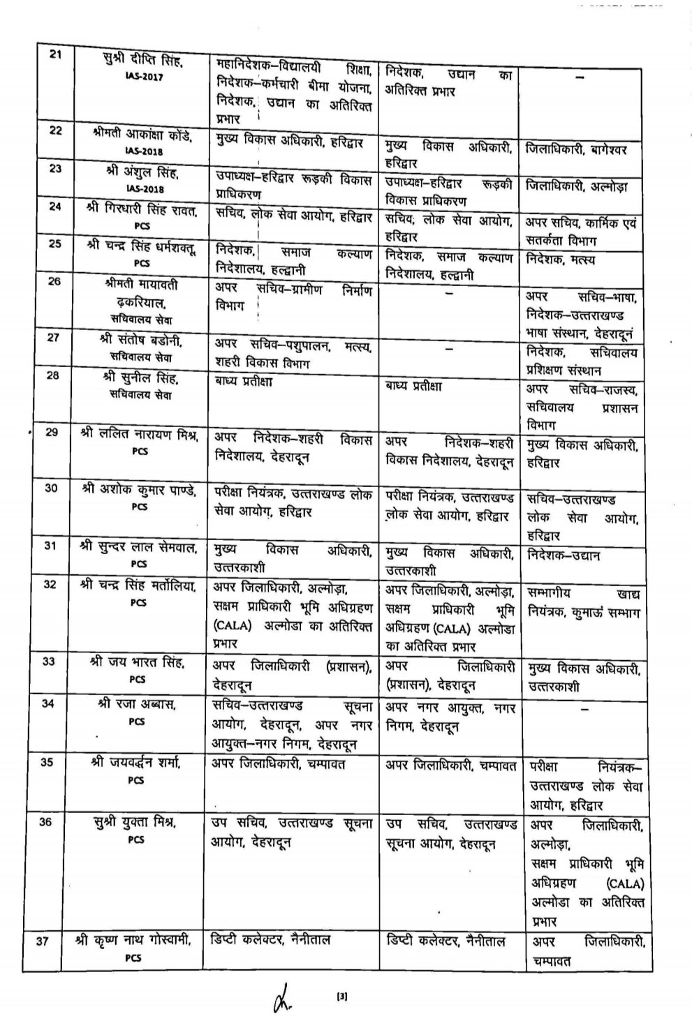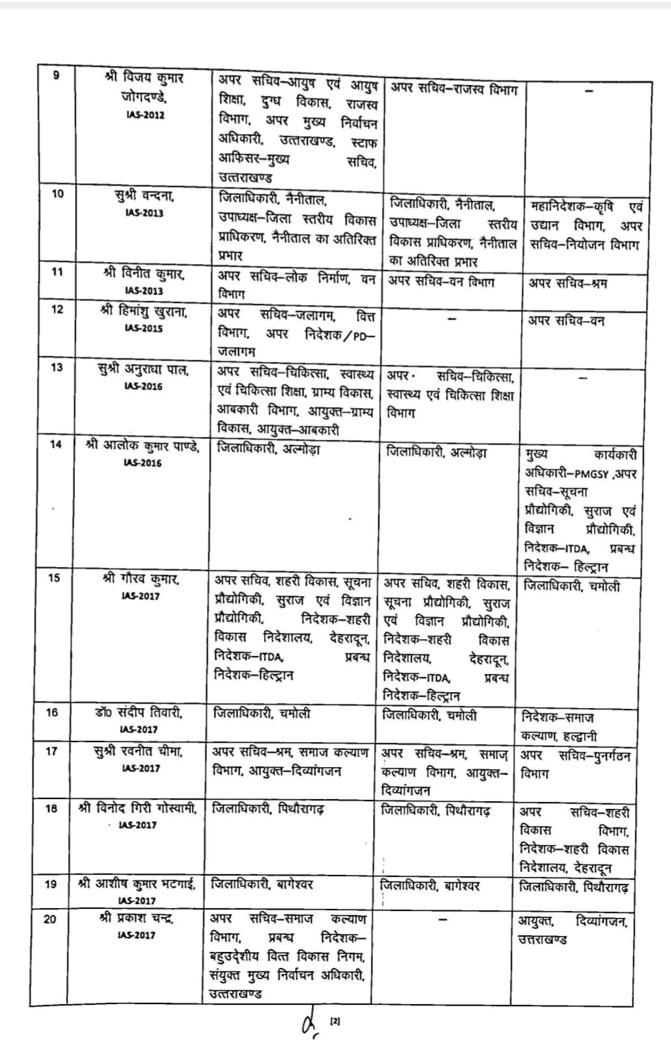 उत्तराखंड में जिलाधिकारियों सहित बड़ी संख्या में IAS, IFS, और PCS अधिकारियों के तबादले