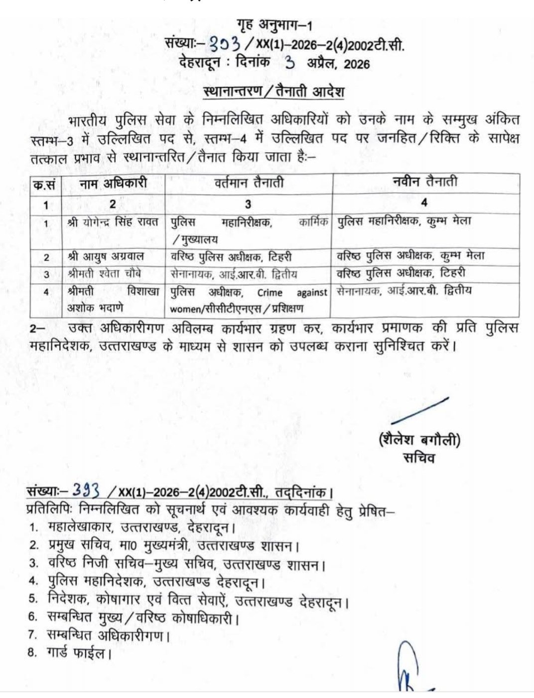 उत्तराखंड में आईपीएस अधिकारियों के हुए तबादले। सूची-