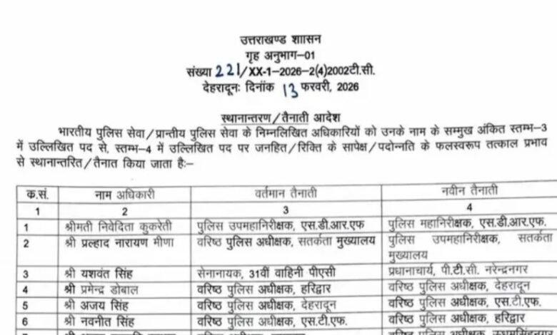 उत्तराखंड में पुलिस महकमे में बड़ा फेरबदल: 20 आईपीएस/पीपीएस अधिकारियों के तबादले