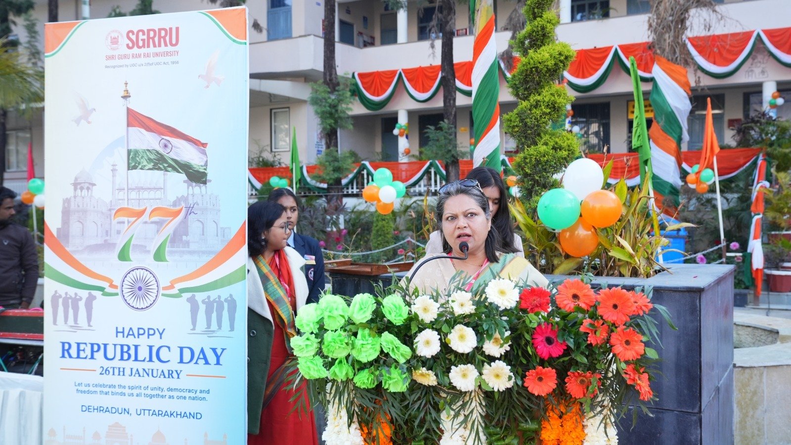 श्री गुरु राम राय विश्वविद्यालय परिसर में कुलपति प्रो. (डॉ.) के. प्रतापन ने राष्ट्रीय ध्वज फहराया तथा अनुशासित परेड की सलामी ली। विश्वविद्यालय के एनसीसी कैडेट्स, एन एस एस