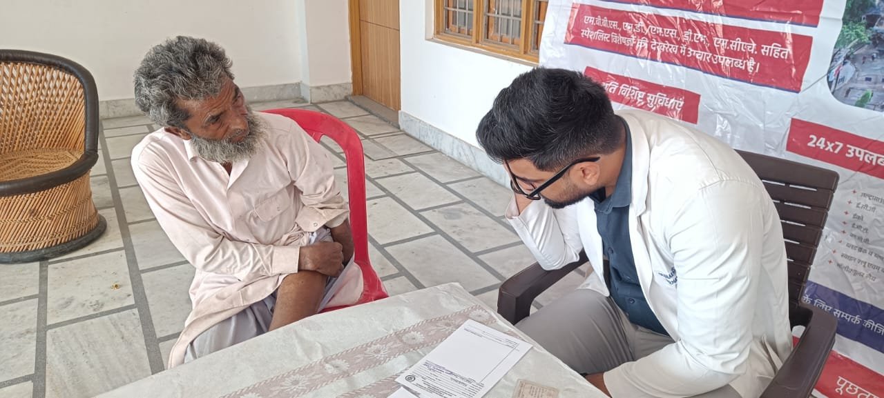 भूकंपुर गांव लंढौरा में इन्दिरेश अस्पताल का निःशुल्क स्वास्थ्य शिविर