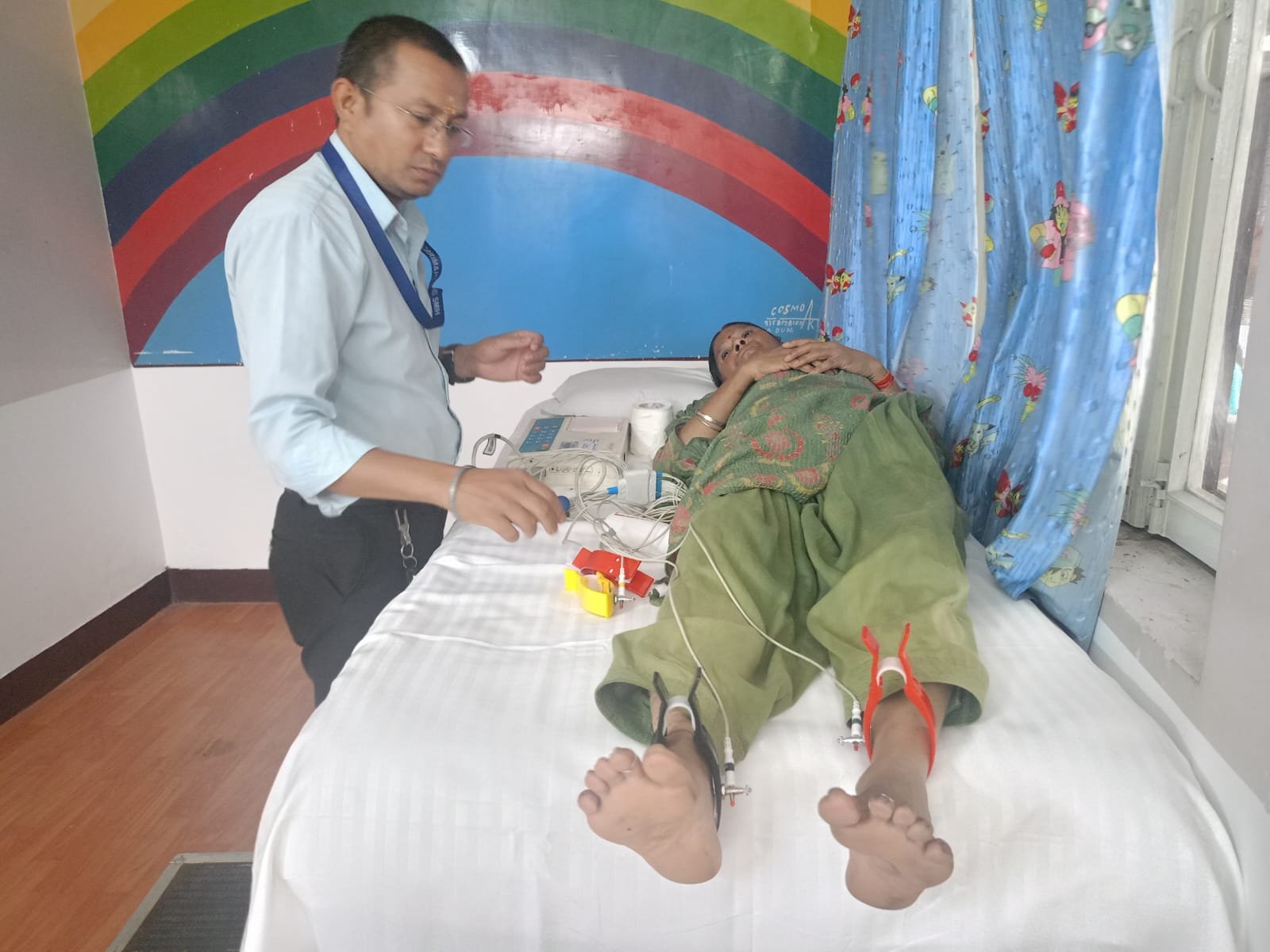ऽ श्री महंत इन्दिरेश अस्पताल की ओर से ईसीजी, ब्लड शुगर, ब्लड प्रैशर की हुईं निःशुल्क जांचें व निःशुल्क दवाईयों का वितरण