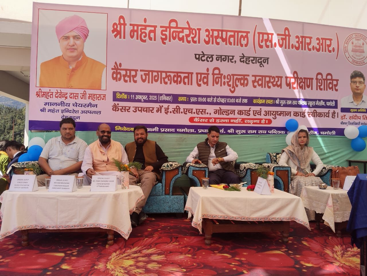 देहरादून:श्री महंत इन्दिरेश अस्पताल, देहरादून के सौजन्य से श्री गुरु राम राय पब्लिक स्कूल, गैरसैंण में शनिवार, 11 अक्टूबर 2025 को कैंसर जागरूकता एवं निःशुल्क स्वास्थ्य परीक्षण शिविर का सफल आयोजन किया गया। इस अवसर पर 3002 से अधिक मरीजों ने शिविर का लाभ उठाया। शिविर में अस्पताल के विशेषज्ञ चिकित्सकों ने स्वास्थ्य परामर्श दिया तथा रोगियों को निःशुल्क दवाइयाँ वितरित की गईं।