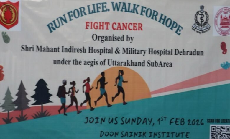 विश्व कैंसर दिवस ( 4 फरवरी ) के उपलक्ष्य में आयोजित गतिविधियों के अंतर्गत रविवार, 1 फरवरी 2026 को उत्तराखंड सब एरिया के तत्वावधान में श्री महंत इंदिरेश अस्पताल के ऑन्कोलॉजी विभाग तथा मिलिट्री हॉस्पिटल, देहरादून द्वारा संयुक्त रूप से कैंसर जागरूकता हेतु वॉकाथॉन एवं रन का आयोजन किया गया। कार्यक्रम का औपचारिक उद्घाटन रविवार को किया गया तथा रन को ब्रिगेडियर प्रफुल मोहन, कमांडेंट, मिलिट्री हॉस्पिटल, एवं डॉ. पंकज गर्ग, विभागाध्यक्ष, ऑन्कोलॉजी विभाग, श्री महंत इंदिरेश अस्पताल द्वारा हरी झंडी दिखाकर रवाना किया गया।