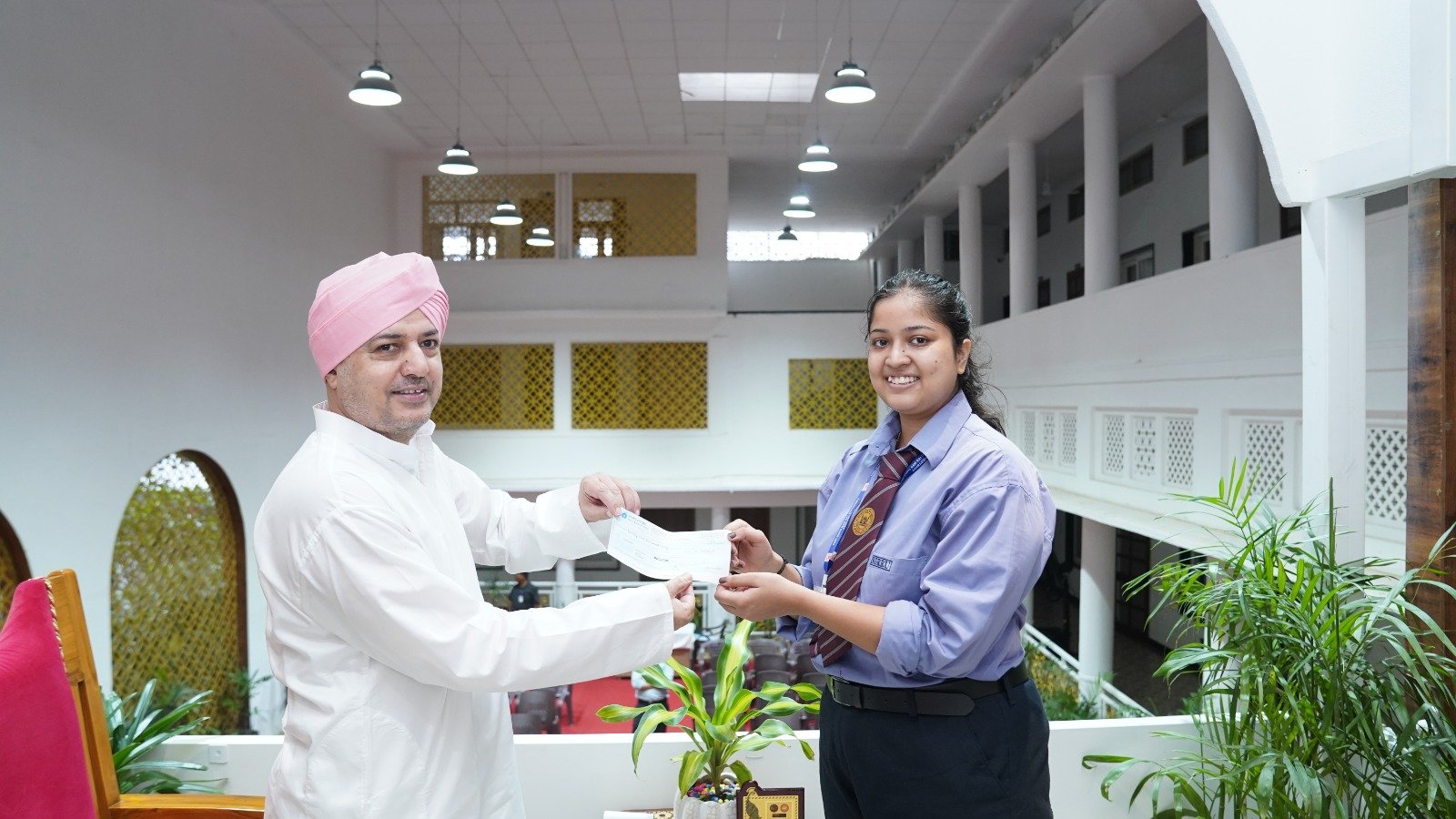 श्री गुरु राम राय विश्वविद्यालय के माननीय प्रेसीडेंट श्रीमहंत देवेन्द्र दास जी महाराज ने 25000/- रुपये का चेक प्रदान कर किया सम्मानित