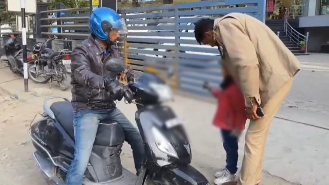 आज दिनाँक 03/01/2026 को राजपुर रोड पर एक स्कूटी सवार व्यक्ति अपनी स्कूटी के आगे एक छोटे बच्चे को बैठाकर स्कूटी को काफी तेज गति से चला रहा था, जिसे एसएसपी देहरादून द्वारा तत्काल रुकवाया गया तो उक्त स्कूटी चालक नशे की हालत में मिला, जिस पर एसएसपी देहरादून अजय सिंह द्वारा उक्त बच्चे को स्कूटी से नीचे उतारकर तत्काल मौके पर उक्त बालक के दादाजी को बुलवाया गया तथा बालक को सकुशल उनके सुपुर्द किया गया तथा मौके पर उक्त स्कूटी को सीज करवाते हुए चालक को शराब पीकर वाहन चलाने पर गिरफ्तार करवाया गया।