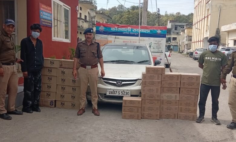 मुख्य मंत्री उत्तराखण्ड के *”ड्रग्स फ्री देवभूमि”* के विजन को साकार करने के लिए वरिष्ठ पुलिस अधीक्षक देहरादून प्रमेन्द्र सिंह डोबाल द्वारा सभी अधीनस्थों को अपने-अपने क्षेत्र में अवैध मादक पदार्थों/शराब की तस्करी/बिक्री में संलिप्त अभियुक्तों को चिन्हित करते हुए उनके विरूद्ध वैधानिक कार्यवाही किये जाने हेतु दिये गये निर्देशों के अनुपालन में दून पुलिस द्वारा लगातार नशा तस्करों के विरुद्ध प्रभावी कार्यवाही की जा रही है। इसी क्रम में आज दिनांक 15.03.2026 को कोतवाली रायवाला गेट के पास चैकिंग के दौरान 02 अभियुक्तो (1)-शिवम पुत्र रमेश चन्द्र व (2)- ईशु कश्यप उर्फ लड्डू पुत्र बिजेन्द्र कश्यप के कब्जे से वाहन हुण्डई कार संख्या UA07S- 5230 में 10 पेटियों में 576 पव्वे अंग्रेजी शराब व 1125 पाउच टैट्रा पैक देशी शराब की तस्करी करते हुये गिरफ्तार किया गया। अभियुक्तगणों के विरुद्ध कोतवाली रायवाला पर आबकारी अधिनियम के अन्तर्गत अभियोग पंजीकृत किया गया।
