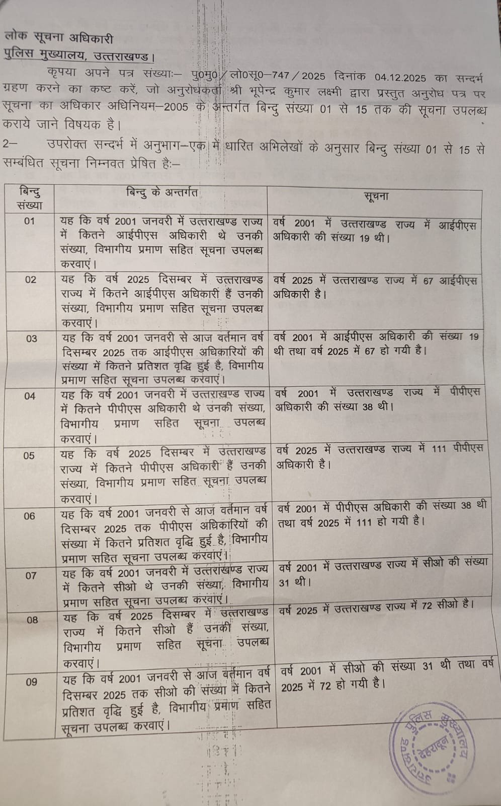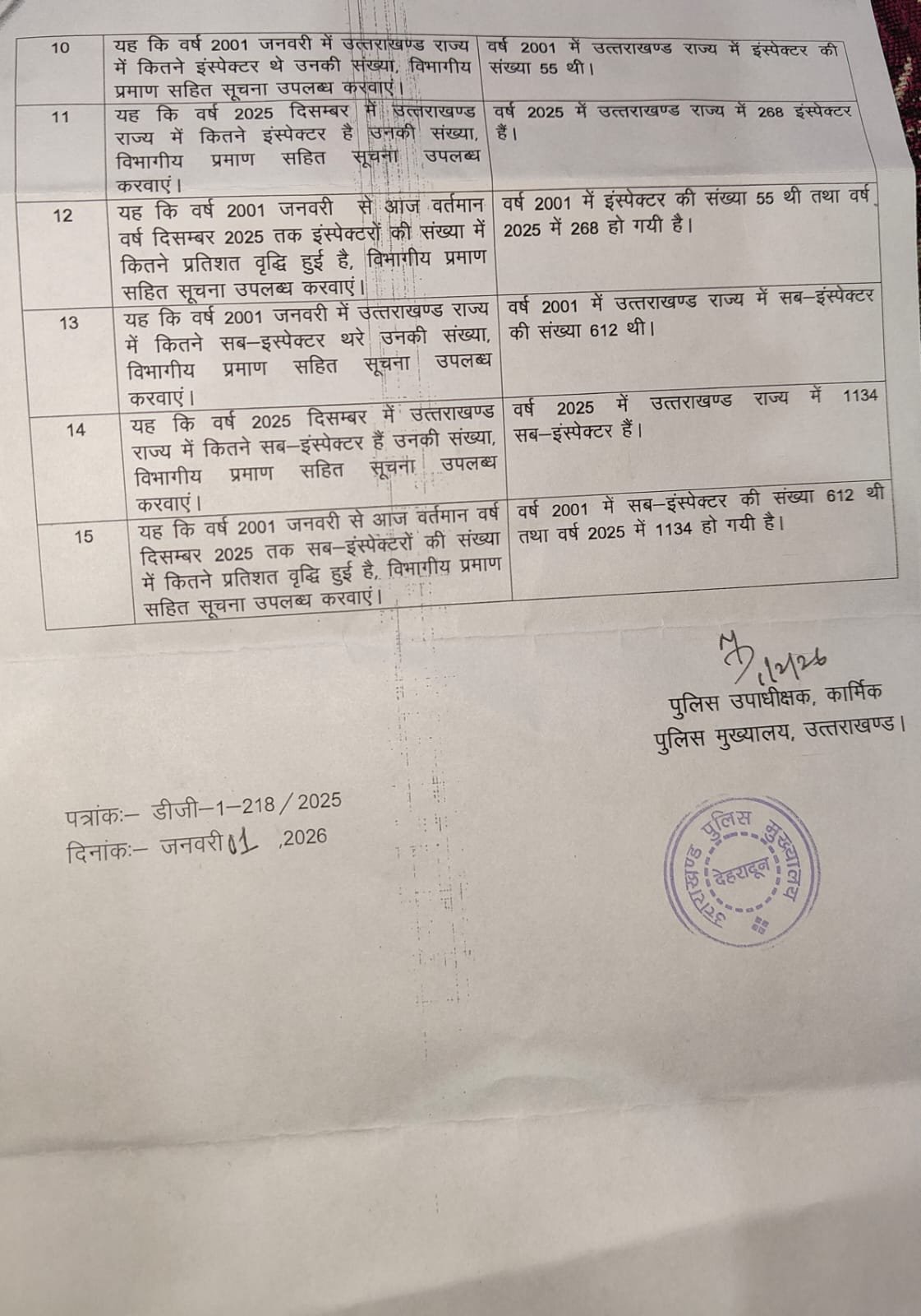 RTI से उजागर यह तथ्य उत्तराखण्ड पुलिस की संरचनात्मक असंतुलन की ओर इशारा करता है।